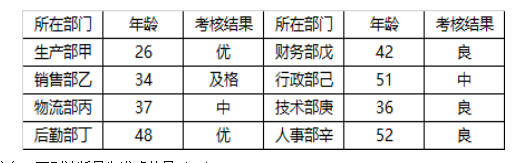 A、由于所列人員分處不同的年齡段,所以所列的考核結(jié)果一定是所有的考核結(jié)果類型