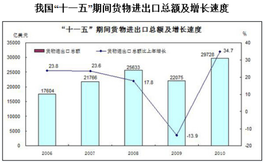 D、“十一五”期間,我國進(jìn)口總額和出口總額的年均增長率基本相當(dāng)