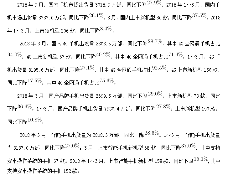②2018年3月,智能手機(jī)出貨量高于1~3月平均水平