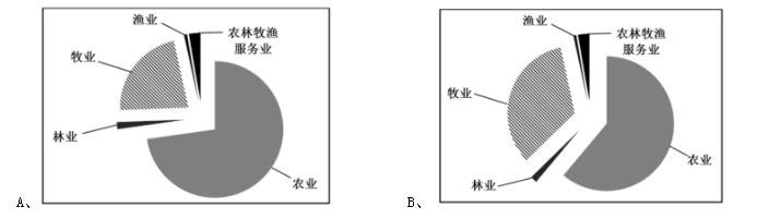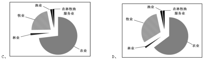106.最符合2015年該自治區(qū)農(nóng)林牧漁業(yè)各產(chǎn)業(yè)產(chǎn)值占農(nóng)林牧副漁總產(chǎn)值的比例情況的是:( )
