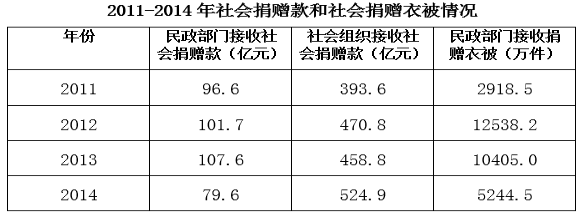 2015年全國(guó)共建立社會(huì)捐助工作站、點(diǎn)和慈善超市3.0萬(wàn)個(gè),比上一年減少0.2萬(wàn)個(gè),其中:慈善超市9654個(gè),同比下降5.1%。全年共接收社會(huì)捐贈(zèng)款654.5億元,其中:民政部門(mén)接收社會(huì)各界捐款44.2億元,各類(lèi)社會(huì)組織接收捐款610.3億元。全年民政部門(mén)接收捐贈(zèng)衣被4537.0萬(wàn)件,捐贈(zèng)物資價(jià)值折合人民幣5.2億元。全年有1838.4萬(wàn)人次困難群眾受益,同比增長(zhǎng)8.5%,增長(zhǎng)率較上一年下降27.5個(gè)百分點(diǎn)。全年有934.6萬(wàn)人次在社會(huì)服務(wù)領(lǐng)域提供了2700.7萬(wàn)小時(shí)的志愿服務(wù),同比減少10.4萬(wàn)小時(shí)。