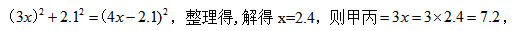 設(shè)甲丙之間的距離為3x,那么丙乙+甲乙=4x,丙乙=4x-2.1,根據(jù)直角三角形中勾股定理可得