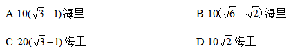 一艘巡邏艇航行至海面某處時(shí),得知正北方向20海里處有一漁船發(fā)生故障,就立即指揮港口的救援艇前往該處營救。已知發(fā)生事故處位于港口北偏東45°的方向上,港口位于巡邏艇北偏西30°的方向上。港口到出事地點(diǎn)的距離為: