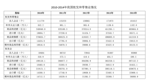A、2014年批發(fā)業(yè)期末商品庫存額與零售業(yè)期末商品庫存額
