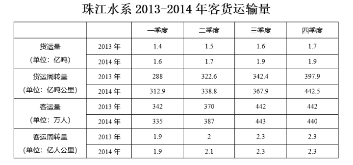 A.珠江水系2014年客運(yùn)量與2013年相差最大的季度是一季度