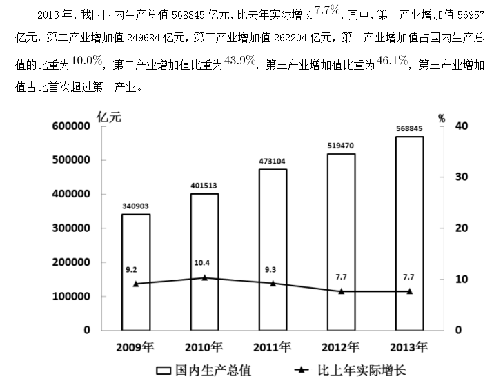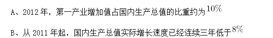 D、2013年,第二產(chǎn)業(yè)增加值占國內(nèi)生產(chǎn)總值的比重最大