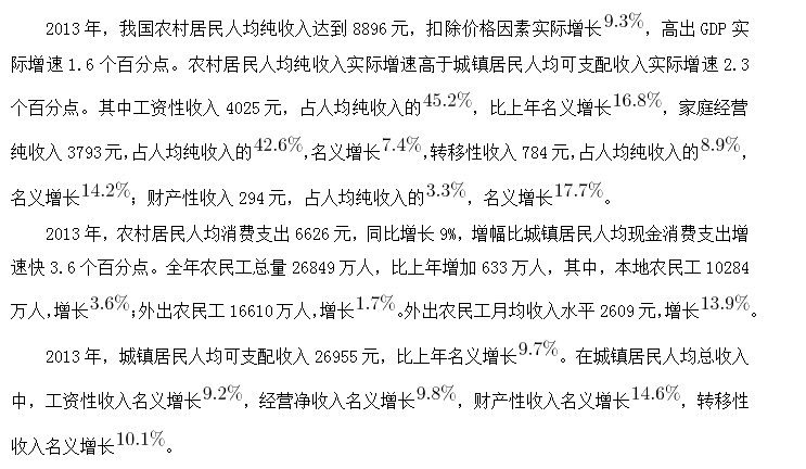 A、2013年,我國城鎮(zhèn)居民人均可支配收入實(shí)際增速約為