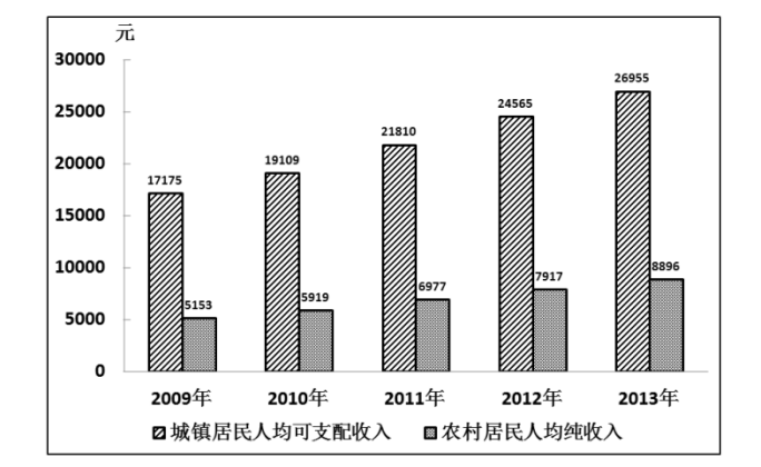 C、2009—2013年,我國城鄉(xiāng)居民收入比最高的年份是2010年