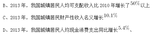 A、2013年,在我國城鎮(zhèn)居民人均總收入中,轉(zhuǎn)移性收入名義增長最快
