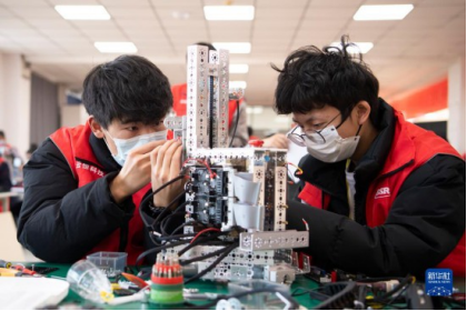 2021年12月25日,第三屆山西省職業(yè)技能大賽參賽選手在位于山西機械高級技工學(xué)校的移動機器人項目賽場進行比賽。新華社記者楊晨光攝