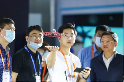 2021年5月27日,第十二屆中國衛(wèi)星導(dǎo)航成就博覽會上,技術(shù)人員向嘉賓展示裝有北斗導(dǎo)航的無人機(jī)。求是圖片馬悅/攝