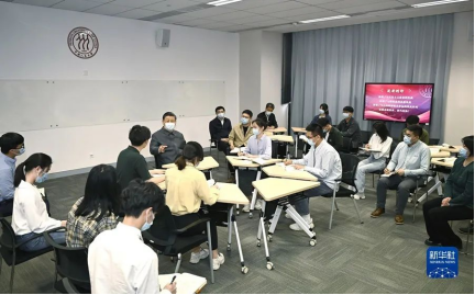 2022年4月25日,習(xí)近平總書記來到中國人民大學(xué)考察調(diào)研。這是總書記在立德樓觀摩思政課智慧教室現(xiàn)場教學(xué)并參與討論。新華社記者燕雁/攝