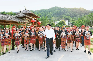 2022年4月10日至13日,中共中央總書記、國家主席、中央軍委主席習(xí)近平在海南考察。這是11日下午,習(xí)近平在五指山市水滿鄉(xiāng)毛納村向村民們揮手致意。新華社記者李學(xué)仁/攝