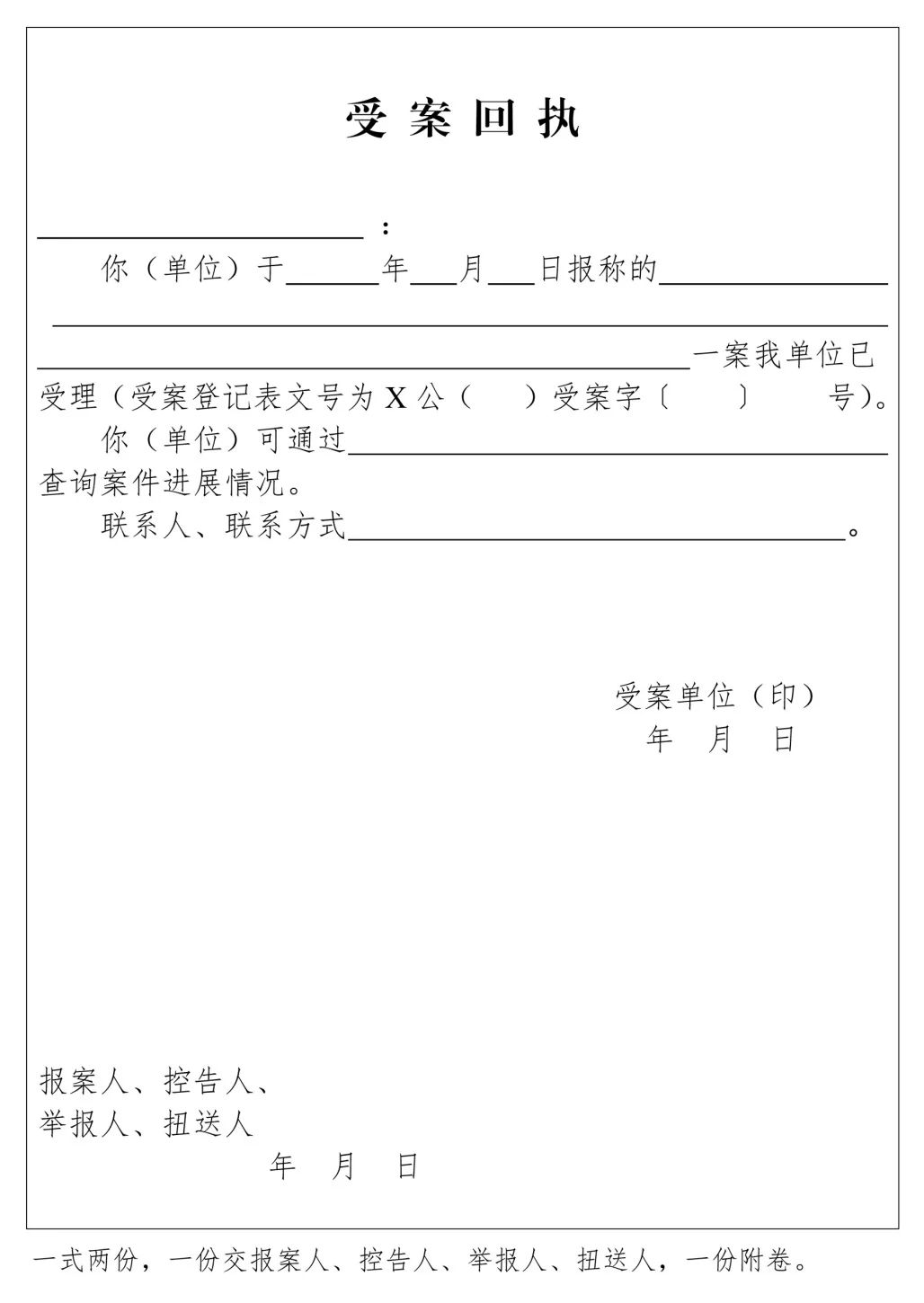 受案回執(zhí)規(guī)范及模板