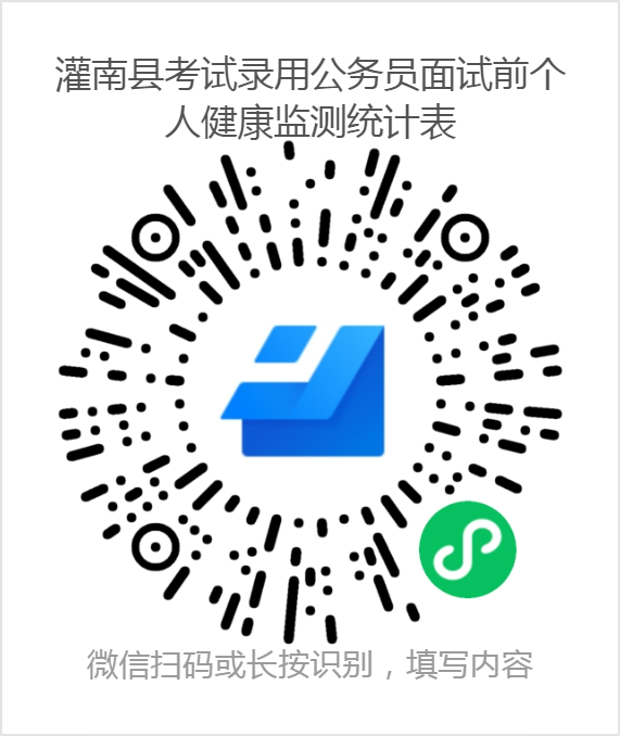 2. 從6月25日開(kāi)始,每日填報(bào)一次《灌南縣考試錄用公務(wù)員面試前個(gè)人健康監(jiān)測(cè)統(tǒng)計(jì)表》(二維碼附后),連續(xù)填報(bào)14天,有條件的考生可提前到達(dá)我市備考,以防出現(xiàn)特殊情況導(dǎo)致不能按時(shí)到場(chǎng)參加考試。(建議將二維碼下載至手機(jī)保存,方便每天填報(bào))