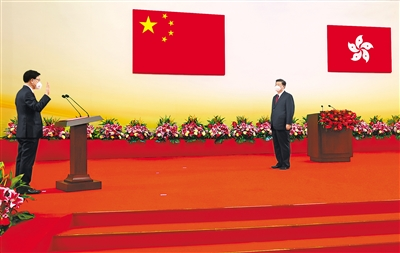 習近平指出,中華民族偉大復(fù)興已經(jīng)進入不可逆轉(zhuǎn)的歷史進程。推進“一國兩制”在香港的成功實踐是這一歷史進程的重要組成部分。我們堅信,有偉大祖國的堅定支持,有“一國兩制”方針的堅實保障,在實現(xiàn)我國第二個百年奮斗目標的新征程上,香港一定能夠創(chuàng)造更大輝煌,一定能夠同祖國人民一道共享中華民族偉大復(fù)興的榮光。