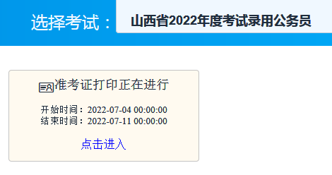 2022山西公務(wù)員考試準(zhǔn)考證打印入口(7.4-10)
