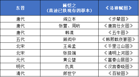 ②顧愷之:東晉,與曹不興、陸探微、張僧繇合稱“六朝四大家”,為傳統(tǒng)繪畫的發(fā)展奠定了基礎?!杜敷饒D》。