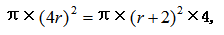 例1:一個(gè)圓形,半徑變?yōu)樵瓉?lái)的4倍之后的圓的面積,等于半徑增加2厘米之后的面積的4倍,則原來(lái)的半徑是( )?