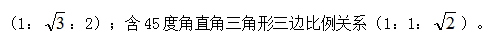 3.特殊角度直角三角形三邊關(guān)系:含30度直角三角形三邊比例關(guān)系