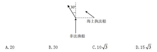 例3:一艘非法漁船作業(yè)時(shí)發(fā)現(xiàn)其正右方有海上執(zhí)行船,于是沿下圖所示方向左轉(zhuǎn)30度后立即以15節(jié)(1節(jié)=1海里/時(shí))的速度逃跑,同時(shí)執(zhí)法船沿某一方直線方向勻速追趕,并正好在某一點(diǎn)追上。已知漁船在被追上時(shí)逃跑的距離剛好與其發(fā)現(xiàn)執(zhí)法船時(shí)與執(zhí)法船的距離相同,則執(zhí)法船的速度為多少節(jié)( )?