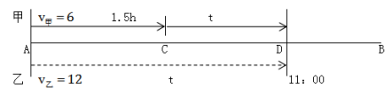 例題:甲以每小時(shí)6千米的速度步行從A地前往B地,在甲出發(fā)90分鐘時(shí),乙發(fā)現(xiàn)甲落下了重要物品,立即騎自行車(chē)以每小時(shí)12千米的速度追甲,終于在上午11點(diǎn)追上了甲。問(wèn)甲出發(fā)時(shí)間是上午幾點(diǎn)?( )