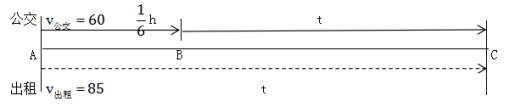=10千米。此時(shí)某人乘出租車(chē)從A、公交車(chē)從B同時(shí)出發(fā),到C點(diǎn)出租車(chē)追上公交車(chē)(運(yùn)動(dòng)時(shí)間相等),設(shè)出租車(chē)追公交車(chē)的時(shí)間為t,由直線追及公式