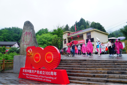 圖為在中國(guó)共產(chǎn)黨百年華誕前夕,游客們冒雨在神山村參觀學(xué)習(xí),感受紅色文化、體驗(yàn)山村新貌。李劼攝江西日?qǐng)?bào)社供圖