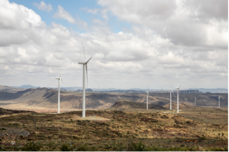 圖為2021年11月22日在南非北開(kāi)普省德阿鎮(zhèn)拍攝的中國(guó)龍?jiān)措娏瘓F(tuán)南非公司運(yùn)營(yíng)的德阿風(fēng)電項(xiàng)目風(fēng)機(jī)。新華社記者呂天然/攝