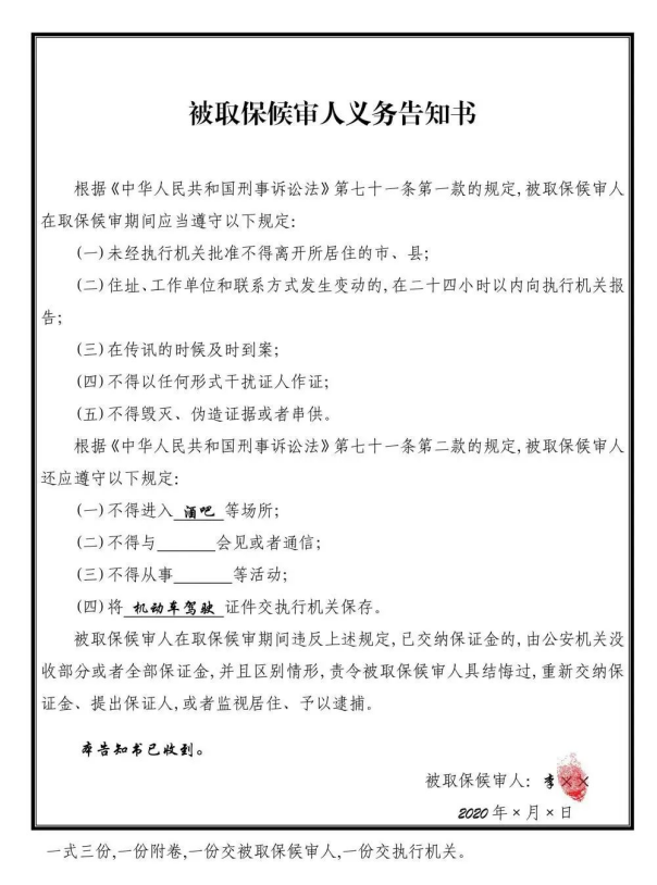 實(shí)務(wù):解除取保候?qū)?/span>的條件以及被取保候?qū)徣肆x務(wù)告知書(shū)