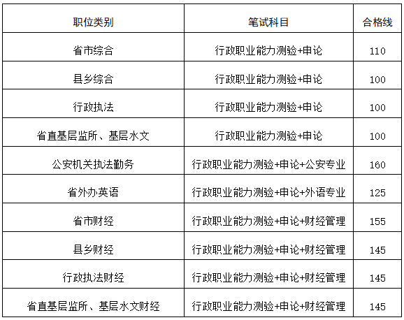 按職位類別分別劃定合格分?jǐn)?shù)線如下(點擊圖片查看大圖):