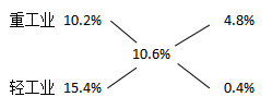 例1:2011年8月新疆全區(qū)規(guī)模以上工業(yè)實(shí)現(xiàn)增加值235.25億元,比上年同期增長(zhǎng)10.6%,其中輕工業(yè)實(shí)現(xiàn)增長(zhǎng)15.4%,重工業(yè)實(shí)現(xiàn)增長(zhǎng)10.2%。