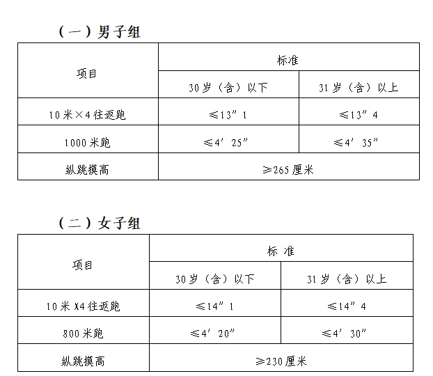 上述3個項目,凡其中一項不達標的,視為體能測評不合格。